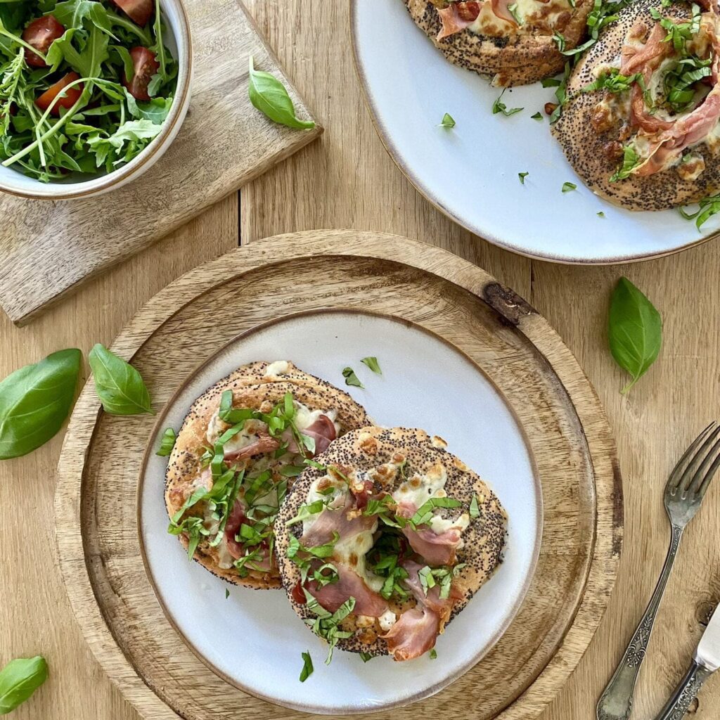 - 2 bajgle, przekrojone na pół