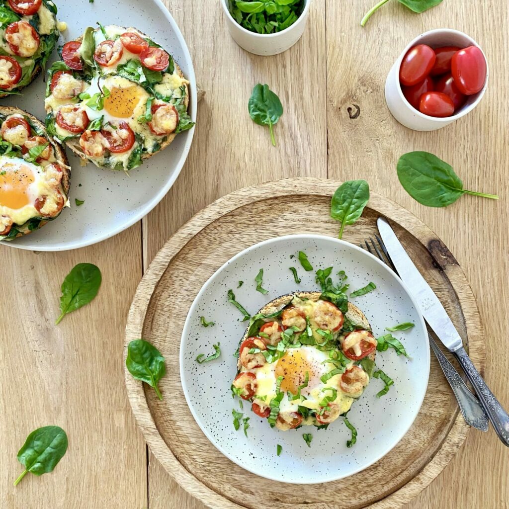 bazylia, grzanki i tosty, jajka, pieczywo, pomidorki koktajlowe, pomidory, śniadania, szpinak, Wielkanoc