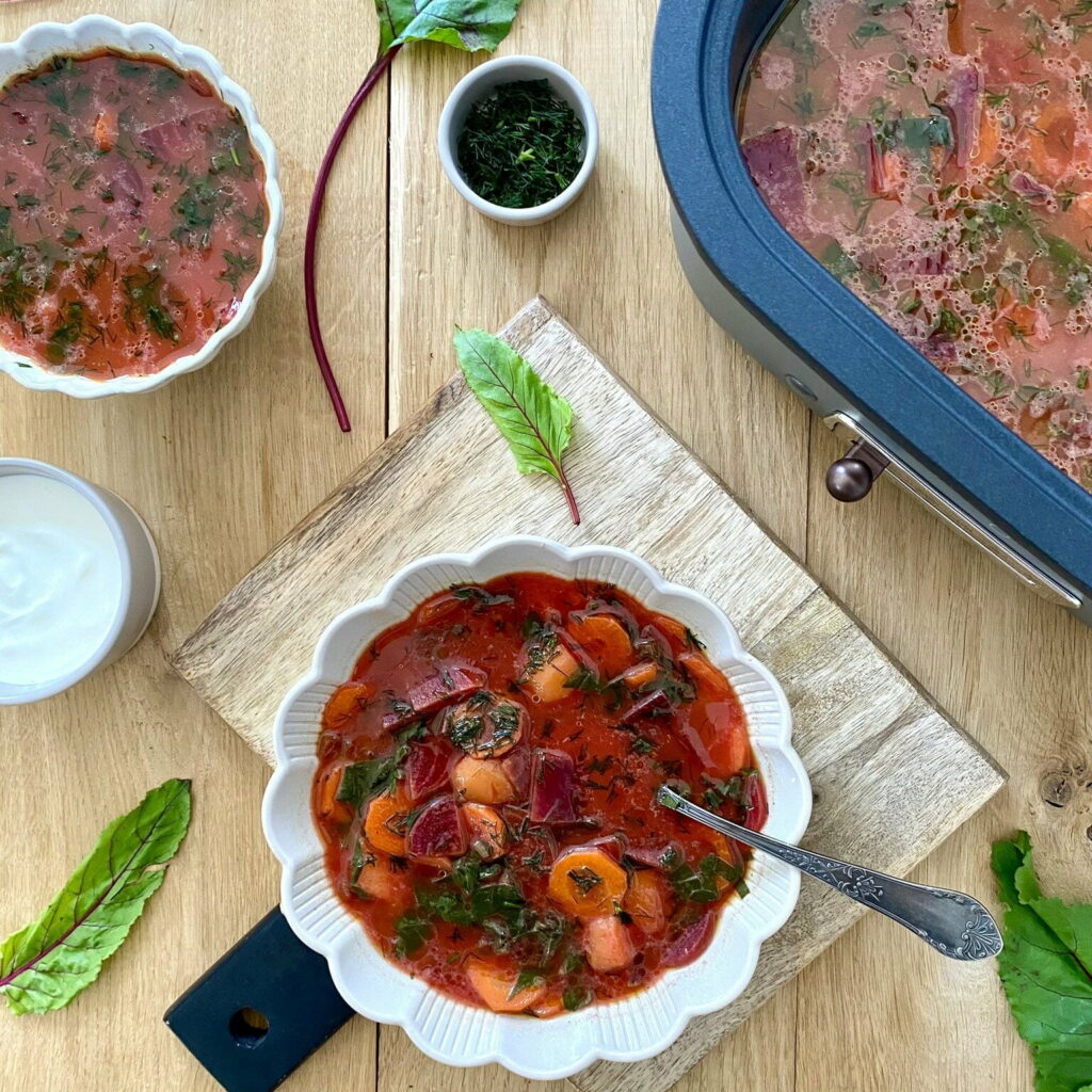Zupa z botwinki z ziemniakami i marchewką.