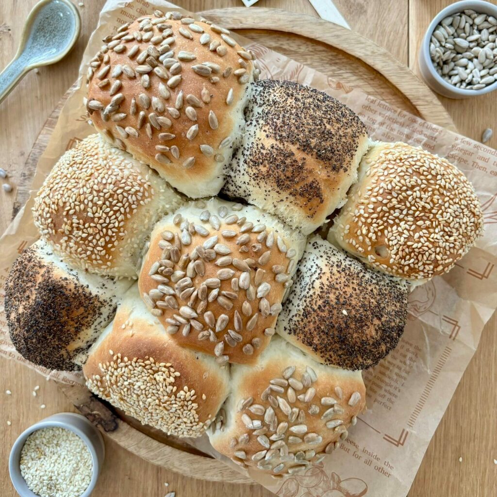 Bułeczki z ziarnem to doskonała propozycja na zdrową i sycącą przekąskę lub dodatek do posiłków. Chrupiące z wierzchu i miękkie w środku, wzbogacone mieszanką różnych ziaren, takich jak słonecznik, mak czy sezam, dostarczają cennych wartości odżywczych, w tym błonnika, witamin i zdrowych tłuszczów. Ich delikatny smak idealnie komponuje się zarówno z wytrawnymi dodatkami, jak i słodkimi smarowidłami. Można je podać na śniadanie, do sałatki lub jako bazę do kanapek.