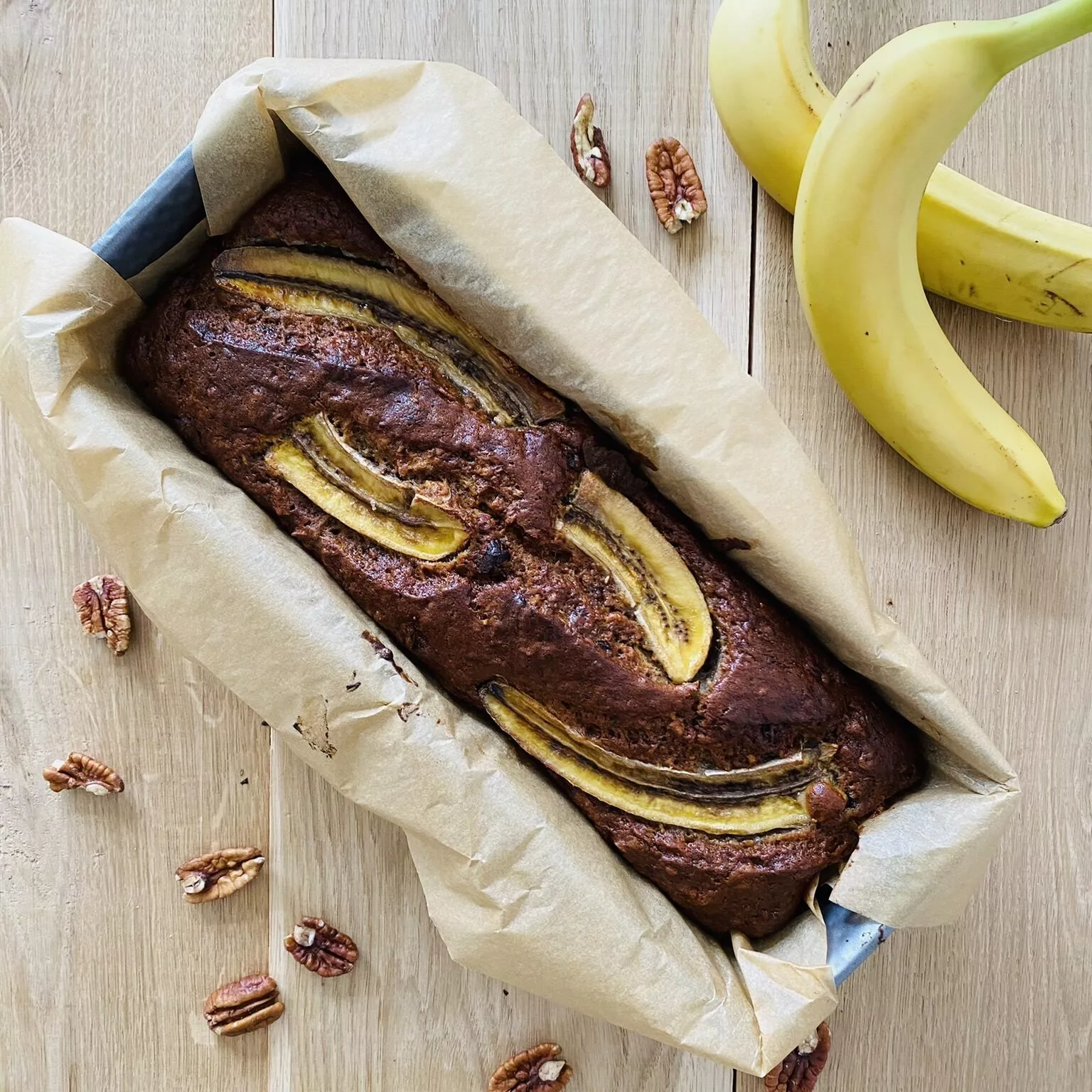 Ciasto bananowe z orzechami i kawałkami gorzkiej czekolady to prawdziwa rozkosz dla podniebienia. Soczyste i słodkie banany nadają wilgotności ciastu, a chrupiące orzechy dodają tekstury i smaku. Kawałki gorzkiej czekolady wzbogacają kompozycję nutą intensywnego smaku, idealnie kontrastując ze słodyczą bananów. To doskonały wybór na szybki, smaczny deser lub przekąskę do herbaty, który z pewnością przypadnie do gustu wszystkim miłośnikom bananów i czekolady.