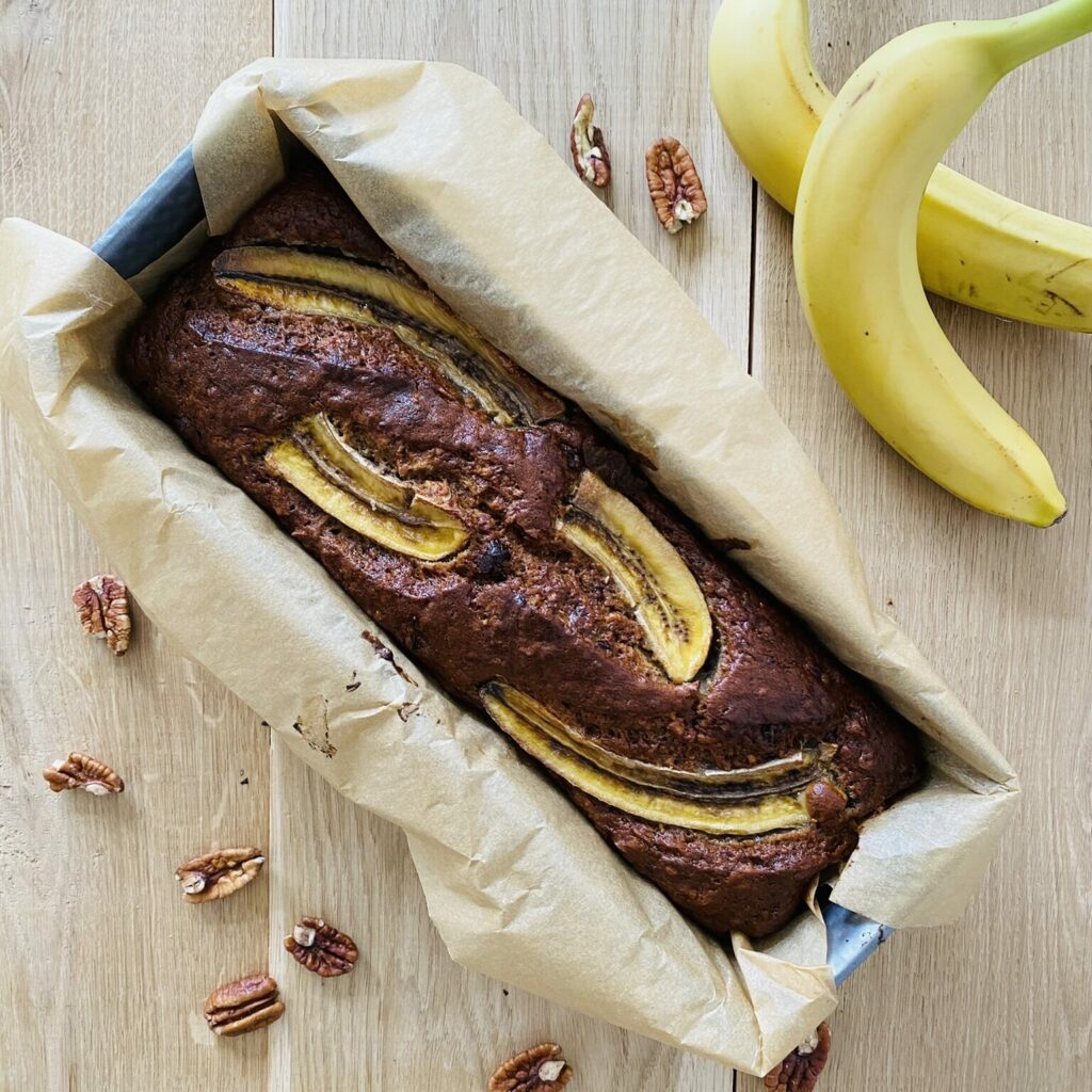Szybki i prosty sposób na pyszne ciasto bananowe z orzechami i kawałkami gorzkiej czekolady.