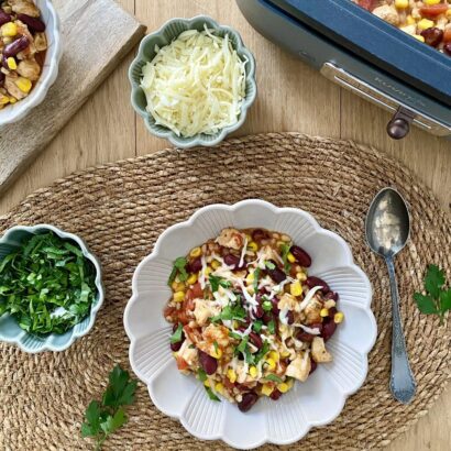• 550 g piersi z kurczaka, pokrojone w drobną kostkę