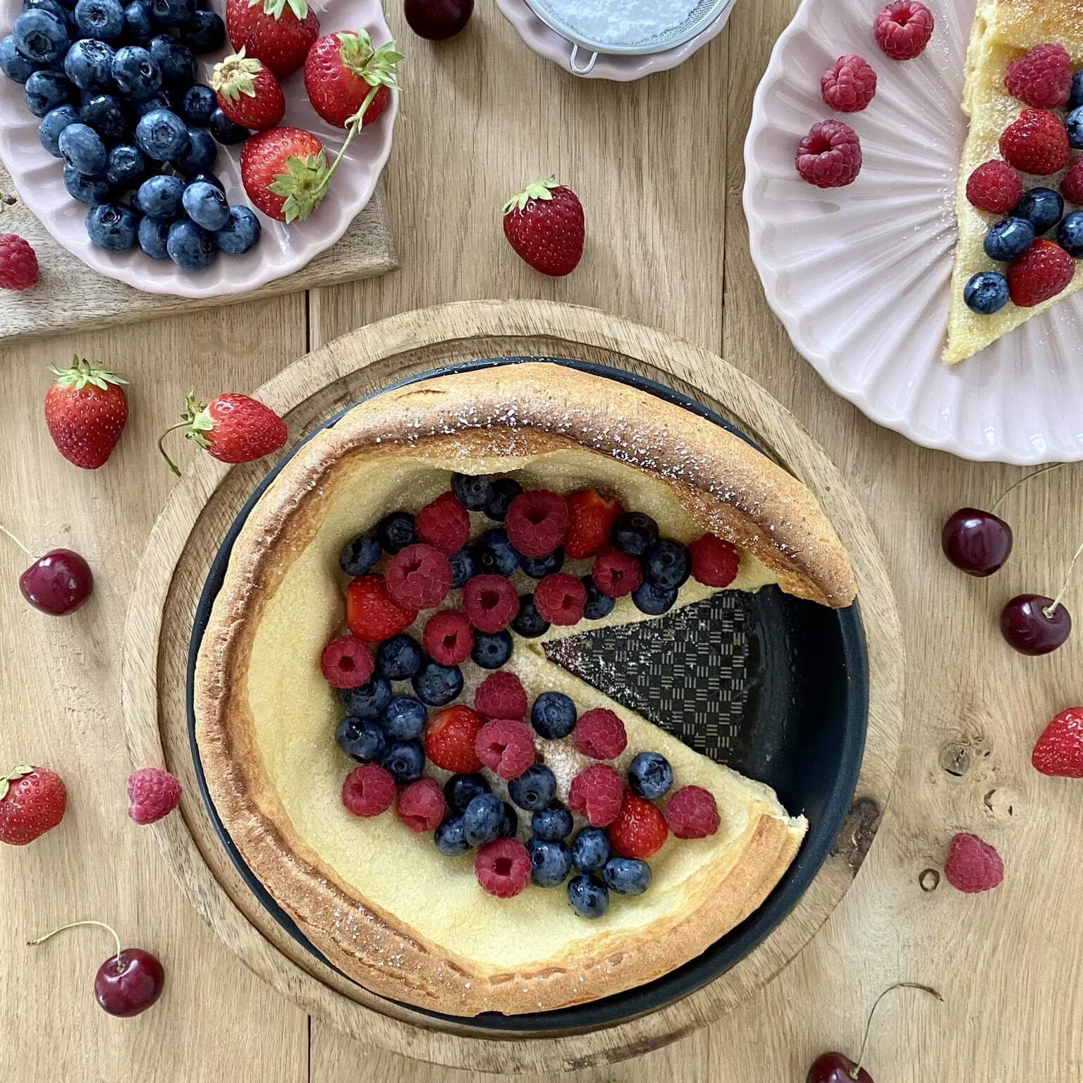 Dutch baby z borówkami, malinami i truskawkami