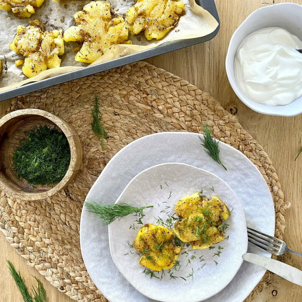 Gniecione ziemniaki z piekarnika