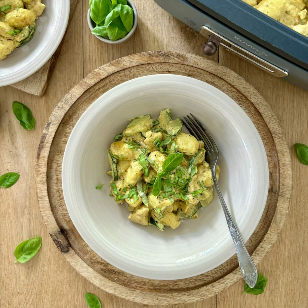 baner, bazylia, cebula, cukinia, curry, gnocchi, jednogarnkowe, kurczak, makarony, mięso, przyjęcia/imprezy, warzywa