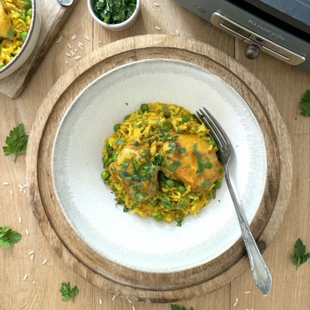 Jednogarnkowy ryż z kurczakiem i groszkiem to danie, które łączy w sobie wygodę przygotowania z bogactwem smaku i wartości odżywczych. Przygotowanie tej potrawy w jednym naczyniu sprawia, że proces gotowania jest prostszy i mniej czasochłonny, a smaki składników idealnie się przenikają. Delikatne kawałki kurczaka, podsmażone, a następnie gotowane w aromatycznym bulionie, stają się soczyste i pełne smaku. Dodatek groszku wzbogaca danie o słodką nutę, natomiast ryż, który wchłania wszystkie smaki, staje się kremowy i aromatyczny. Całość tworzy harmonijną kompozycję, która jest zarówno sycąca, jak i łatwa w przygotowaniu, co czyni ją idealną propozycją na codzienny obiad lub kolację.