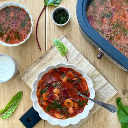 To tradycyjne danie, w którym młoda botwina jest gotowana z dodatkiem warzyw, tworząc aromatyczną zupę.