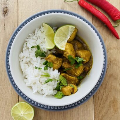 Delikatny i soczysty kurczak w kremowym sosie curry pełnym smaków.