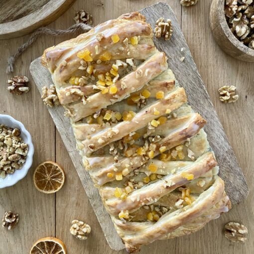 Wieniec orzechowy z ciasta francuskiego.