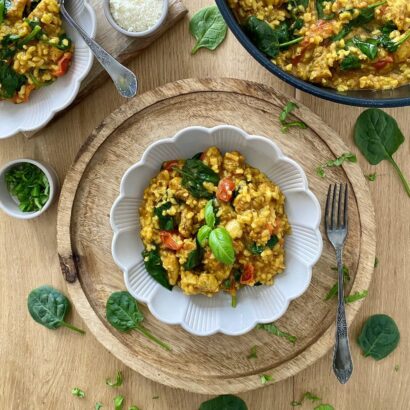 Risotto to danie kuchni włoskiej, które przygotowywane jest z ryżu arborio, bulionu, cebuli, wina i parmezanu. Jest to gęste, kremowe danie o bogatym smaku.