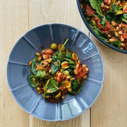 Pyszne danie z soczystymi kawałkami kurczaka w aromatycznych przyprawach z dodatkiem suszonych pomidorów, szpinaku i chrupiącego boczku.