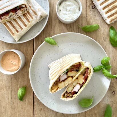 Tortilla z kurczakiem to danie pełne białka i smaku. Podawana z różnymi sosami sprawia, że danie staje się wyjątkowo apetyczne.