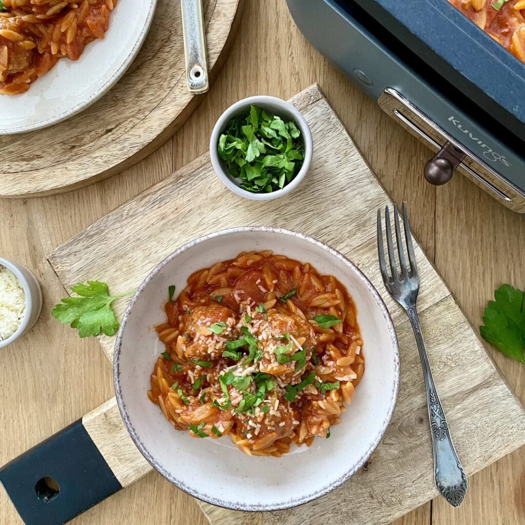 Klopsiki w sosie pomidorowym z orzo to pyszna i sycąca propozycja na obiad. Delikatne mielone mięso w formie klopsików, podawane z aromatycznym sosem pomidorowym i makaronem orzo, tworzy smaczne danie jednogarnkowe, które z pewnością przypadnie wszystkim do gustu.
