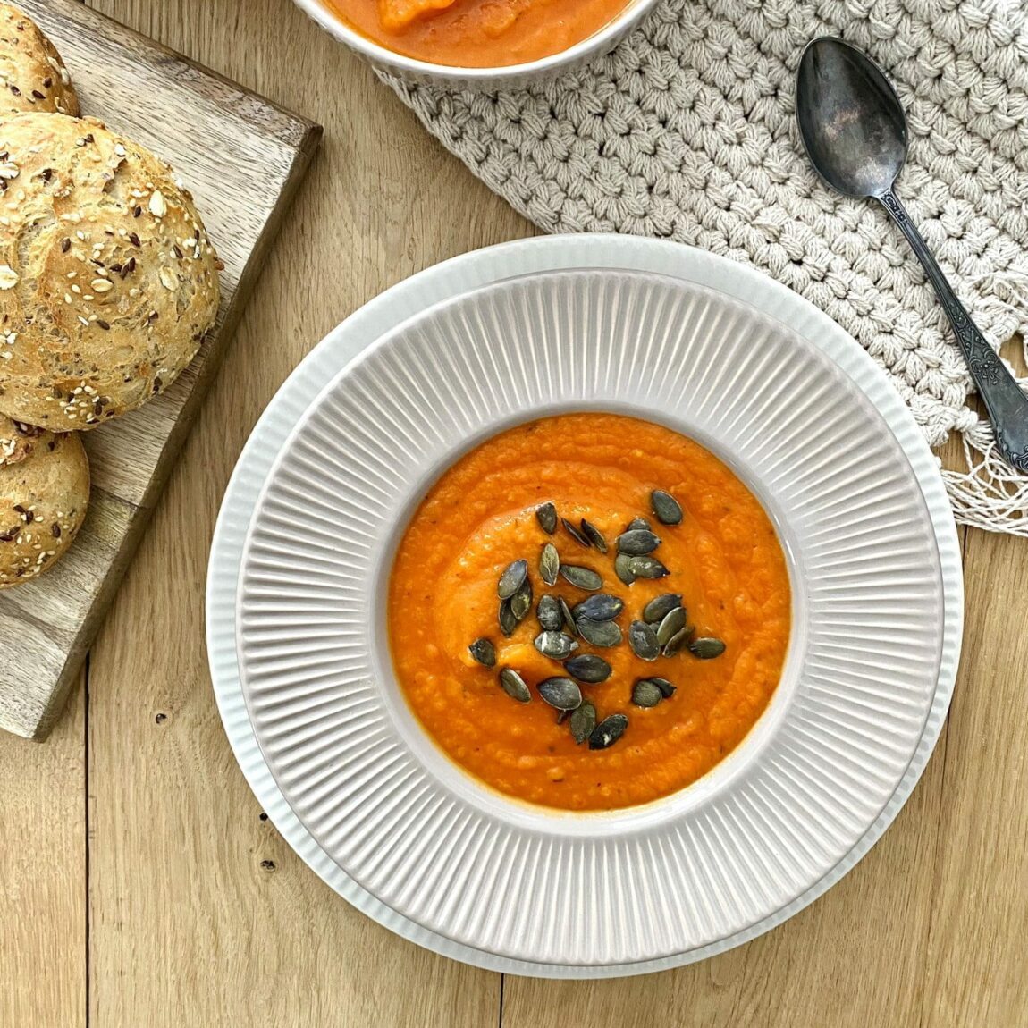 Bardzo łatwy przepis na przepyszny i aromatyczny krem z pieczonej dyni, papryki i papryczki chilli.