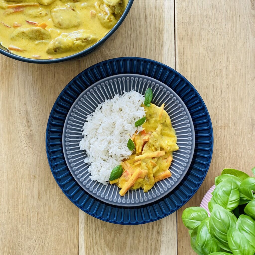 Kolejna odsłona kurczaka w sosie curry, tym razem z marchewką, cebulką i papryką.