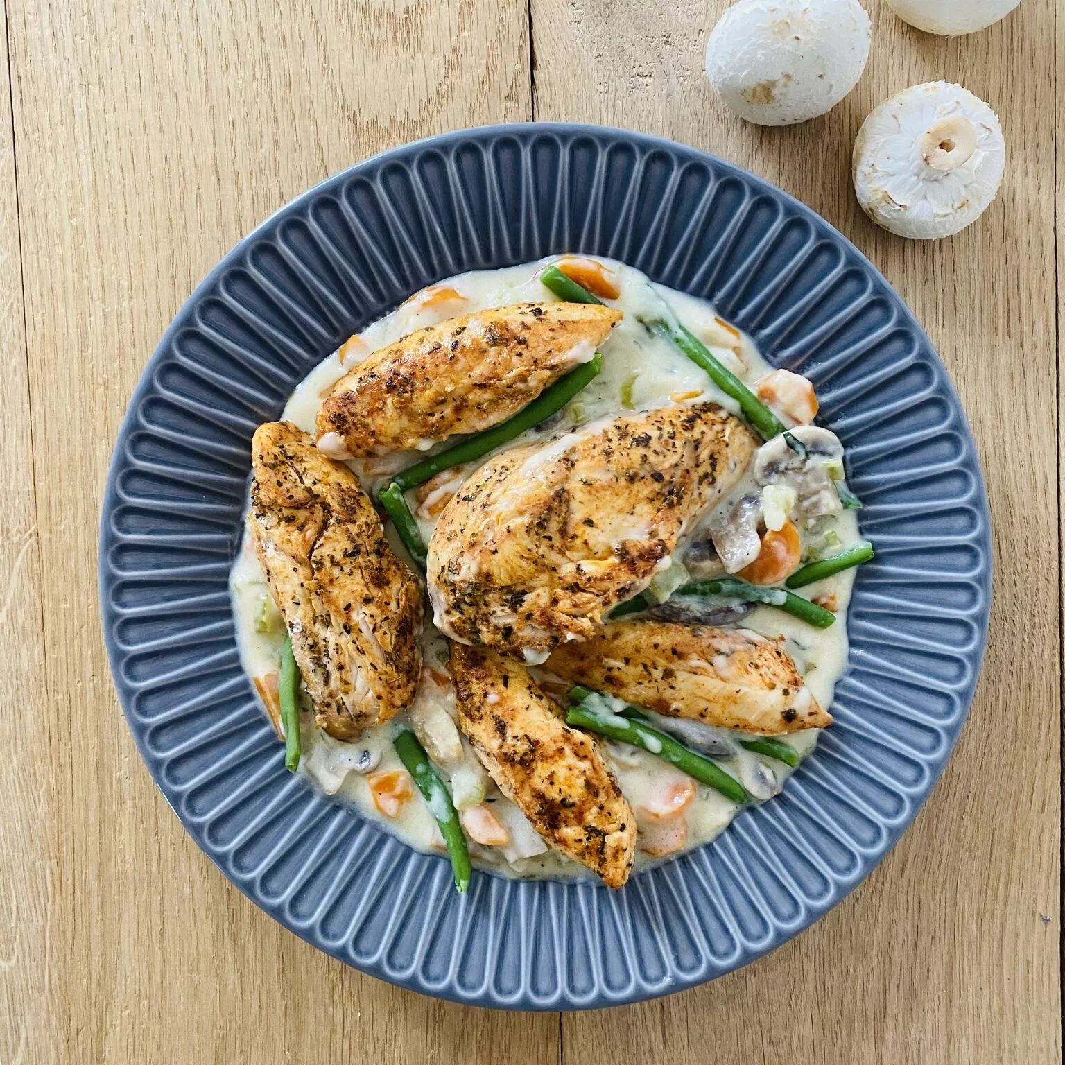 Przepis na kurczaka w kremowym sosie z warzywami.