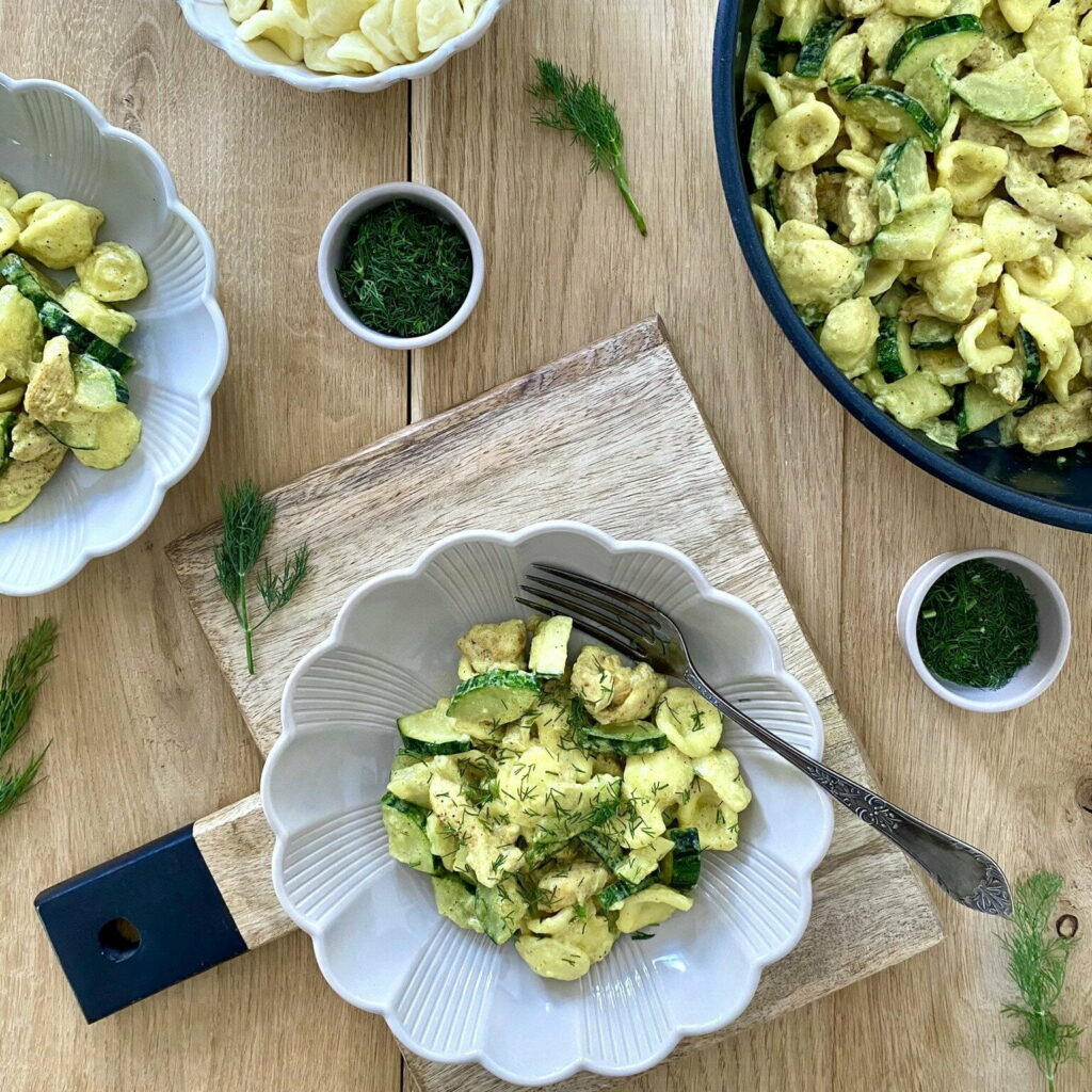 Makaron z cukinią i kurczakiem to danie, które łączy w sobie różnorodność smaków i tekstur, sprawiając, że każdy kęs to prawdziwa uczta. Soczyste kawałki kurczaka duszone są z dodatkiem aromatycznych przypraw, nadając mięsu wyrazistego smaku. Dodatek delikatnie podsmażanej cukinii nadaje potrawie świeżości i chrupkości. Wszystko to podane z makaronem orecchiette tworzy kompozycję, która zaspokoi gusta nawet najbardziej wymagających smakoszy. To prosty przepis, który szybko można przygotować, a smak tej potrawy z pewnością zadowoli podniebienie każdego