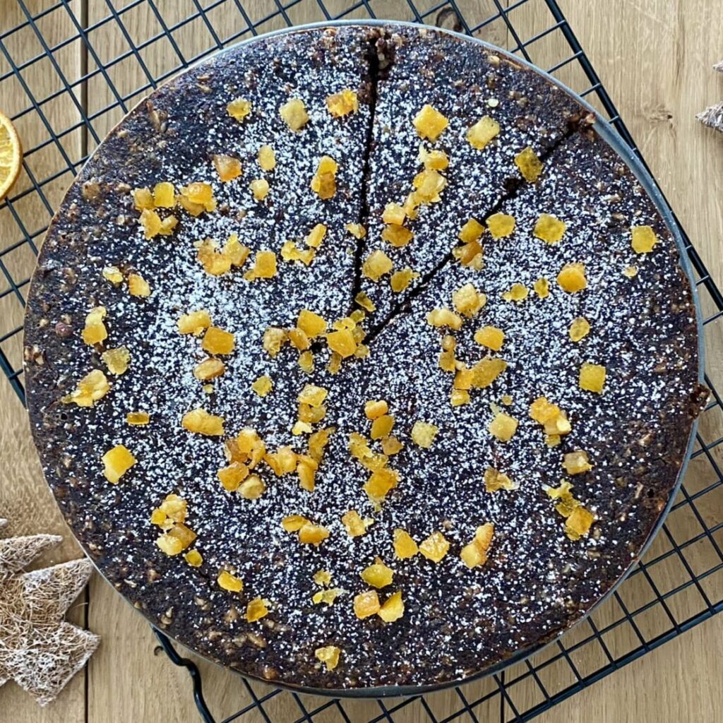 - Posyp cukrem pudrem i skórką pomarańczy.