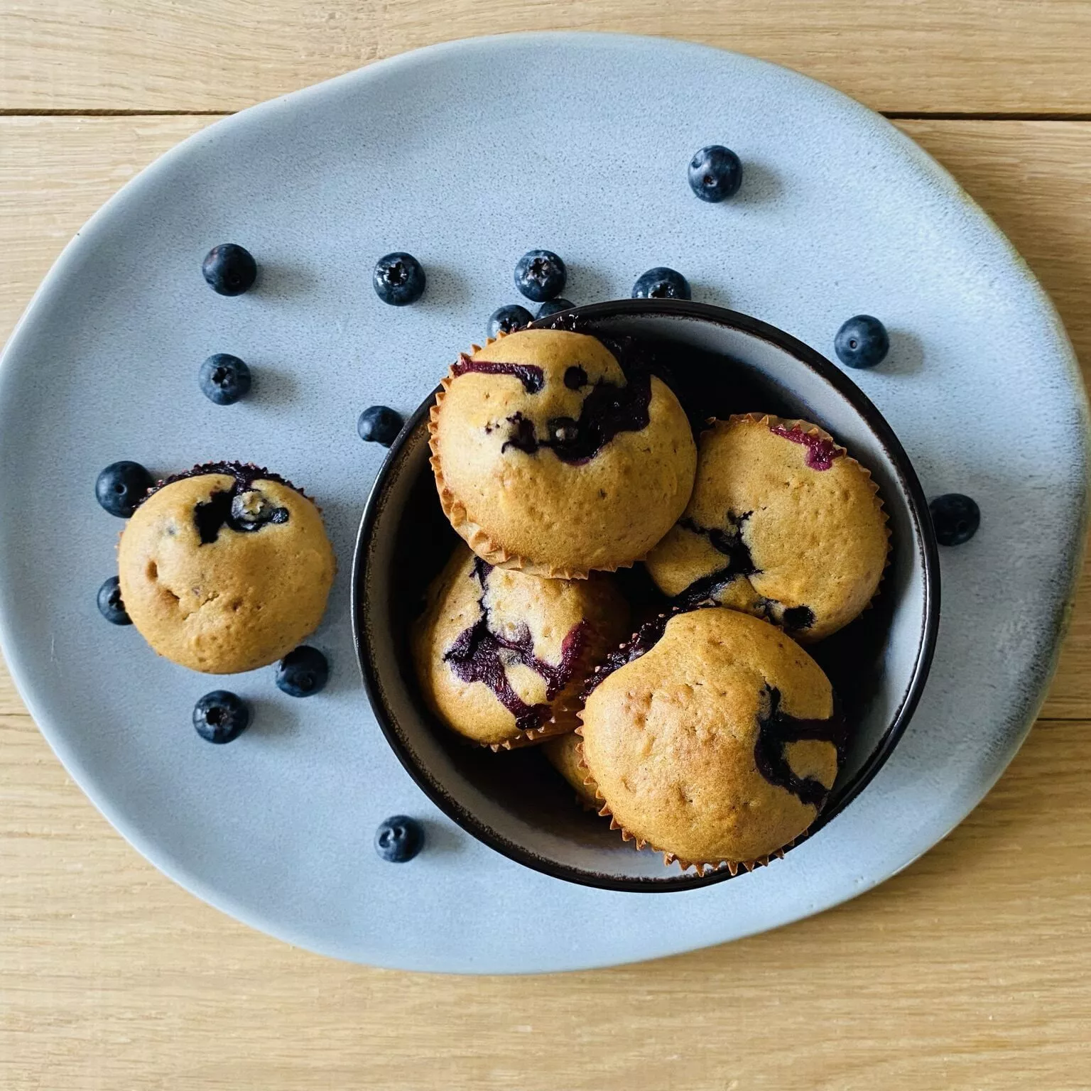 Muffiny z jagodami to apetyczny deser w formie puszystych babeczek. Soczyste jagody dodają świeżości i owocowej słodyczy, tworząc harmonijną kompozycję smakową. Idealne jako lekka przekąska czy słodki dodatek do porannej kawy. To szybki i prosty do zrobienia wypiek, który oczaruje swoim smakiem.