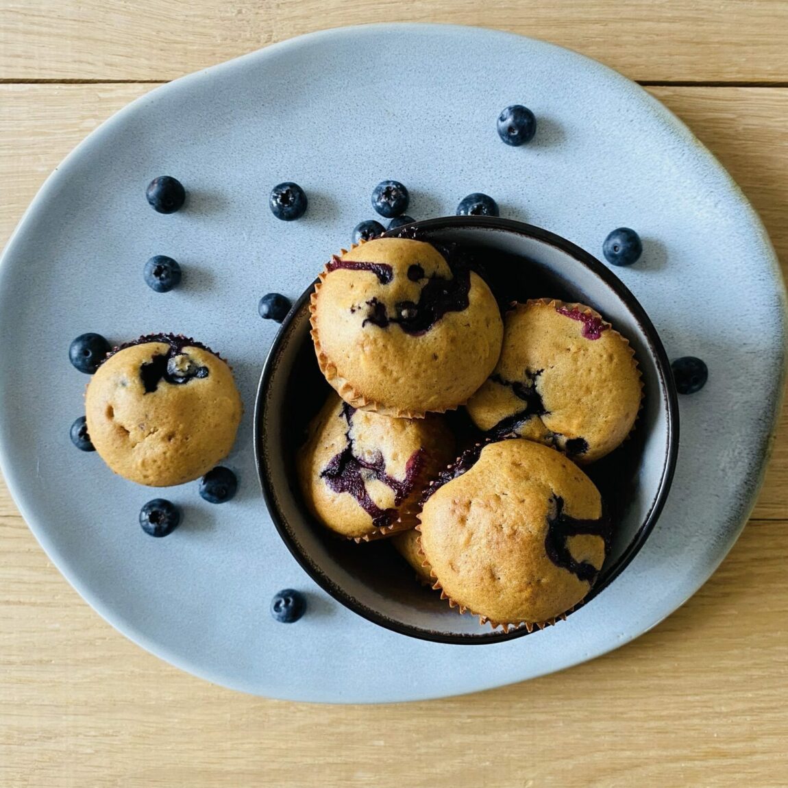 Muffiny z jagodami to apetyczny deser w formie puszystych babeczek. Soczyste jagody dodają świeżości i owocowej słodyczy, tworząc harmonijną kompozycję smakową. Idealne jako lekka przekąska czy słodki dodatek do porannej kawy. To szybki i prosty do zrobienia wypiek, który oczaruje swoim smakiem.
