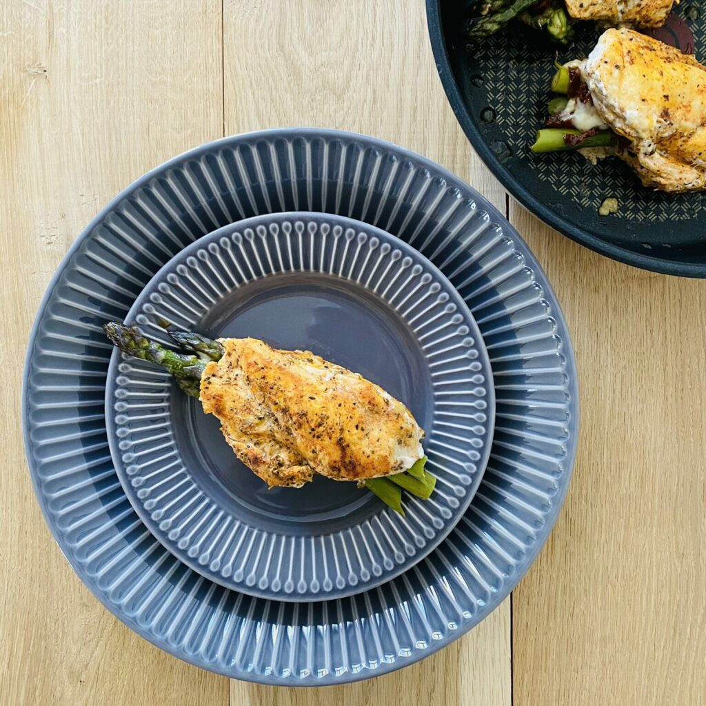 Pyszna pierś z kurczaka nadziewana szparagami, suszonymi pomidorami i serem mozzarella.