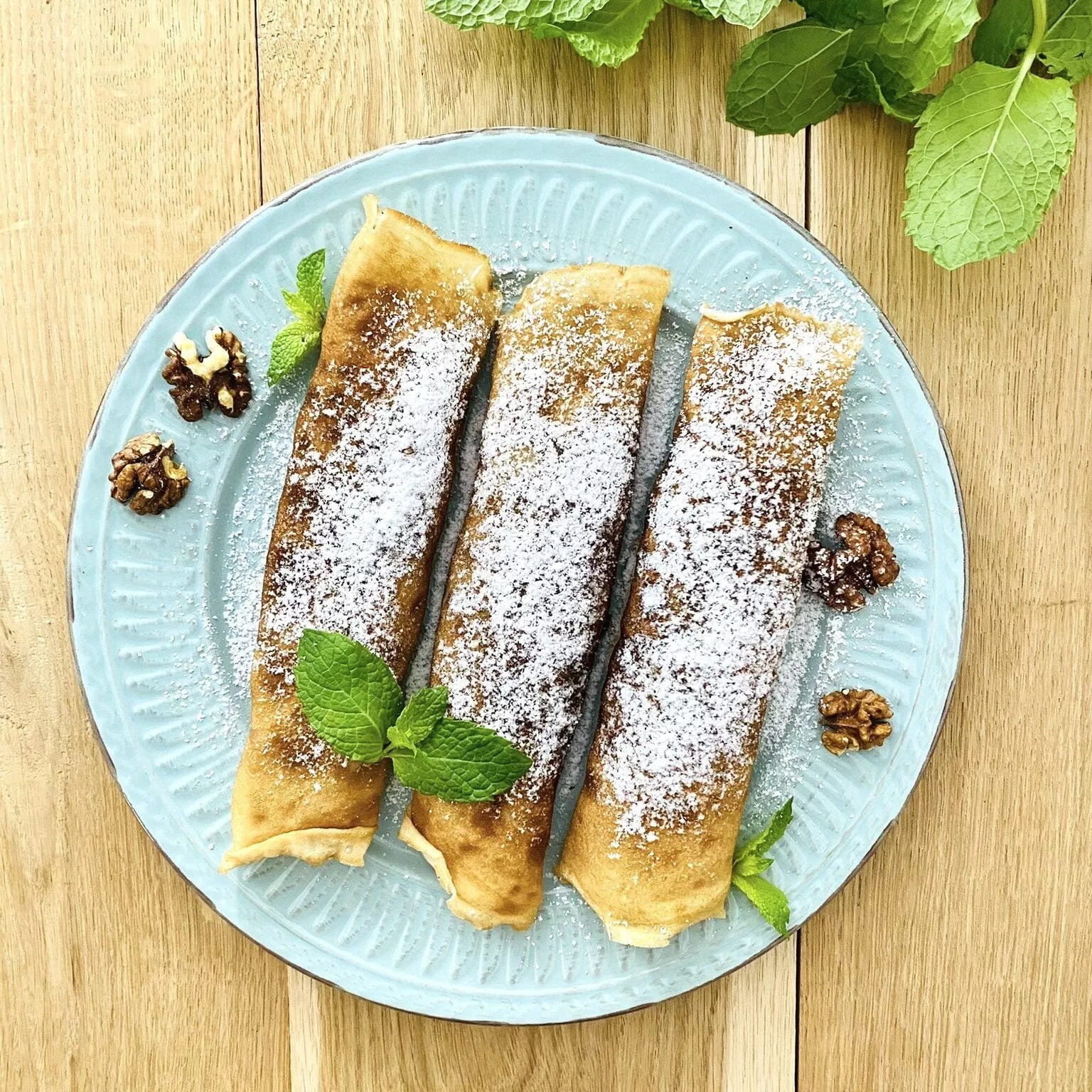 Obiad na słodko? Jak najbardziej! Puszyste naleśniki z prażonymi jabłkami i orzechami to idealny pomysł na taki posiłek.