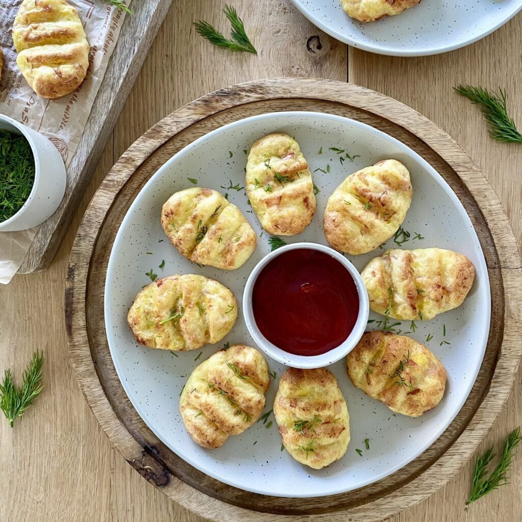 Pieczone kotlety ziemniaczane z szynką z frytkownicy beztłuszczowej to zdrowsza alternatywa dla tradycyjnie smażonych dań. Kombinacja ziemniaków i szynki nadaje im wyjątkowego smaku i konsystencji. Dzięki użyciu frytkownicy beztłuszczowej kotlety stają się chrupiące na zewnątrz, a jednocześnie zachowują soczystość w środku. To danie, które zadowoli wszystkich miłośników klasycznych smaków, będąc jednocześnie lekką i zdrowszą propozycją na obiad lub kolację.