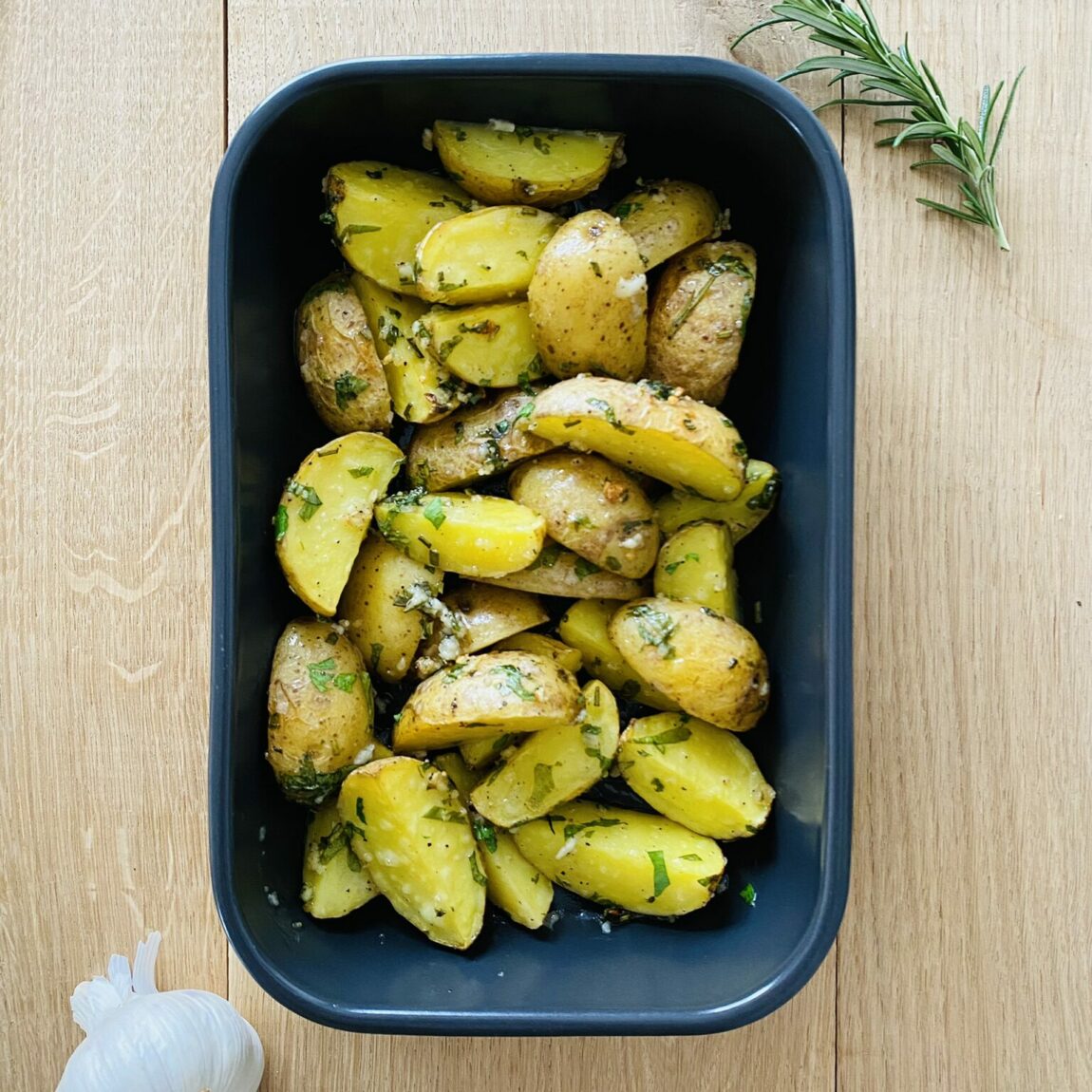Pieczone ziemniaki z czosnkiem i świeżymi ziołami to proste, lecz wyjątkowo aromatyczne danie. Zaczynamy od umycia i pokrojenia ziemniaków, a następnie mieszamy je z oliwą, solą, pieprzem, cebulą, czosnkiem, rozmarynem, tymiankiem i pietruszką. Całość pieczemy w rozgrzanym piekarniku, aż ziemniaki nabiorą złocistego koloru i będą miękkie w środku. Na koniec posypujemy świeżą pietruszką, która nadaje daniu świeżości. Gotowe danie zachwyca prostotą i wyrazistym aromatem, doskonale komponując się z różnorodnymi potrawami.