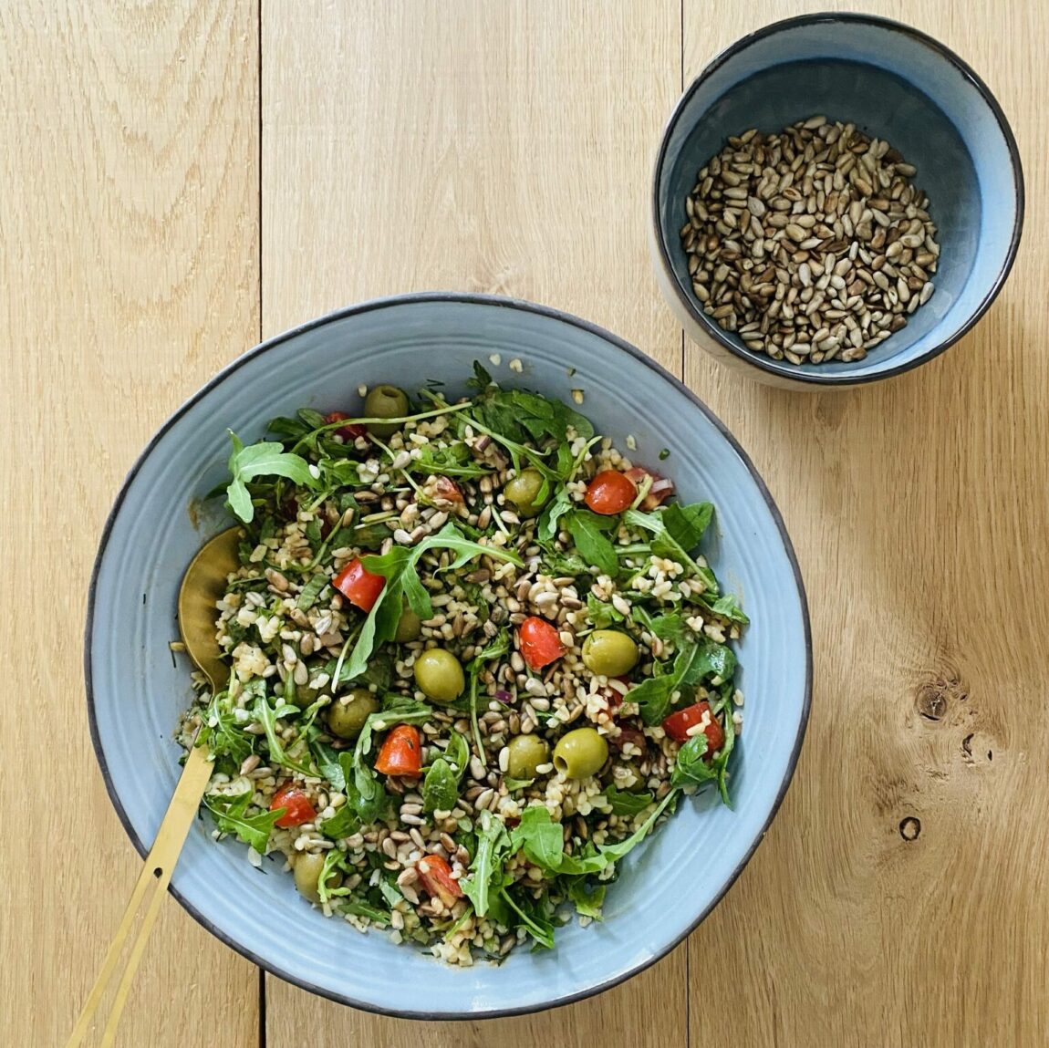 Sałatka z kaszy bulgur to zdrowa i pożywna propozycja, która zachwyca różnorodnością smaków i aromatów. Wymieszanie delikatnej kaszy z pomidorkami, czerwoną cebulą, rukolą i charakterystycznymi oliwkami tworzy połączenie, które idealnie komponuje się z nutą świeżego koperku i intensywnością bazylii. Całość posypana prażonym słonecznikiem to prawdziwa uczta dla podniebienia. Ta sałatka może być doskonałym lekkim posiłkiem, a także wspaniałym towarzyszem mięsa czy ryby.