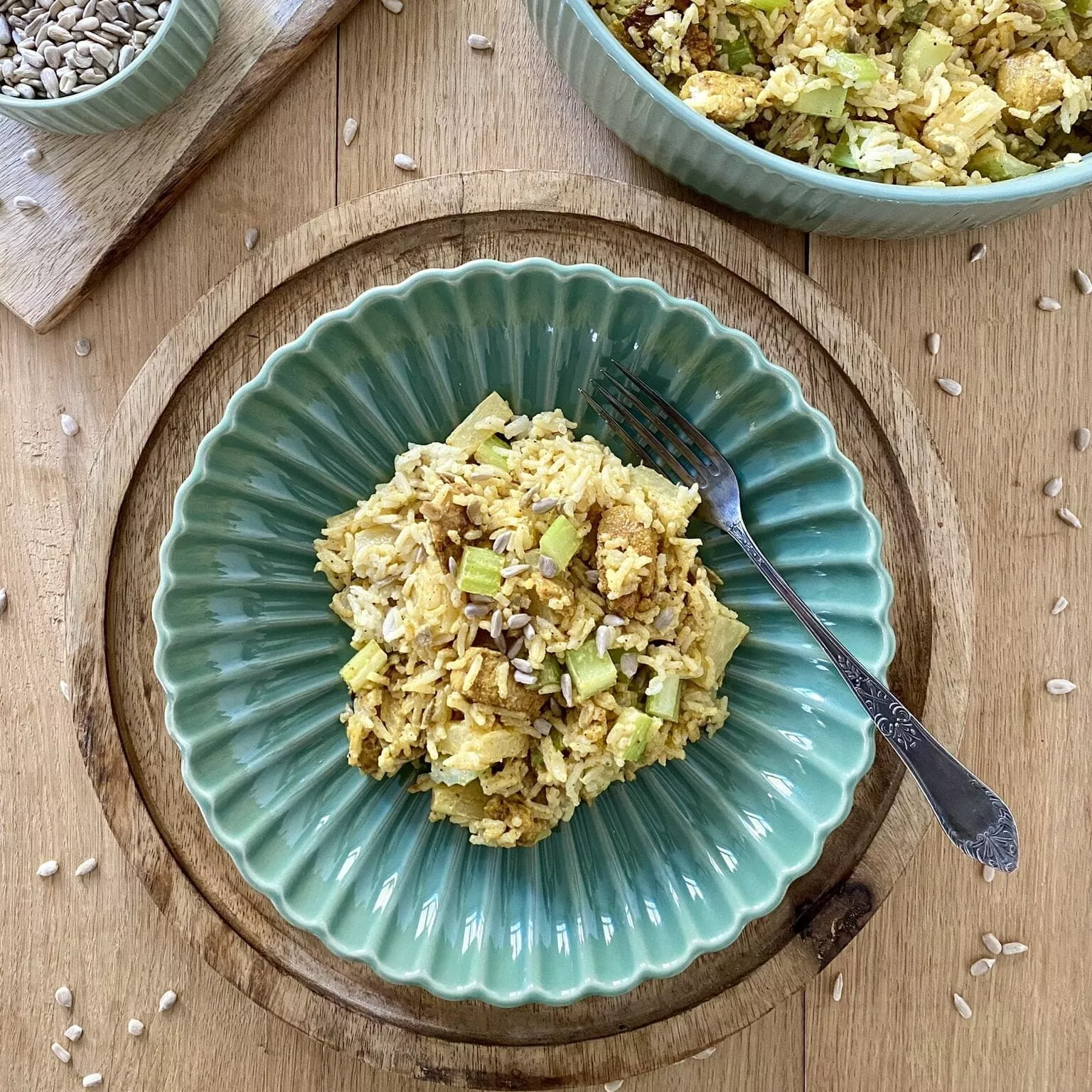 Sałatka z ryżem, ananasem i kurczakiem curry