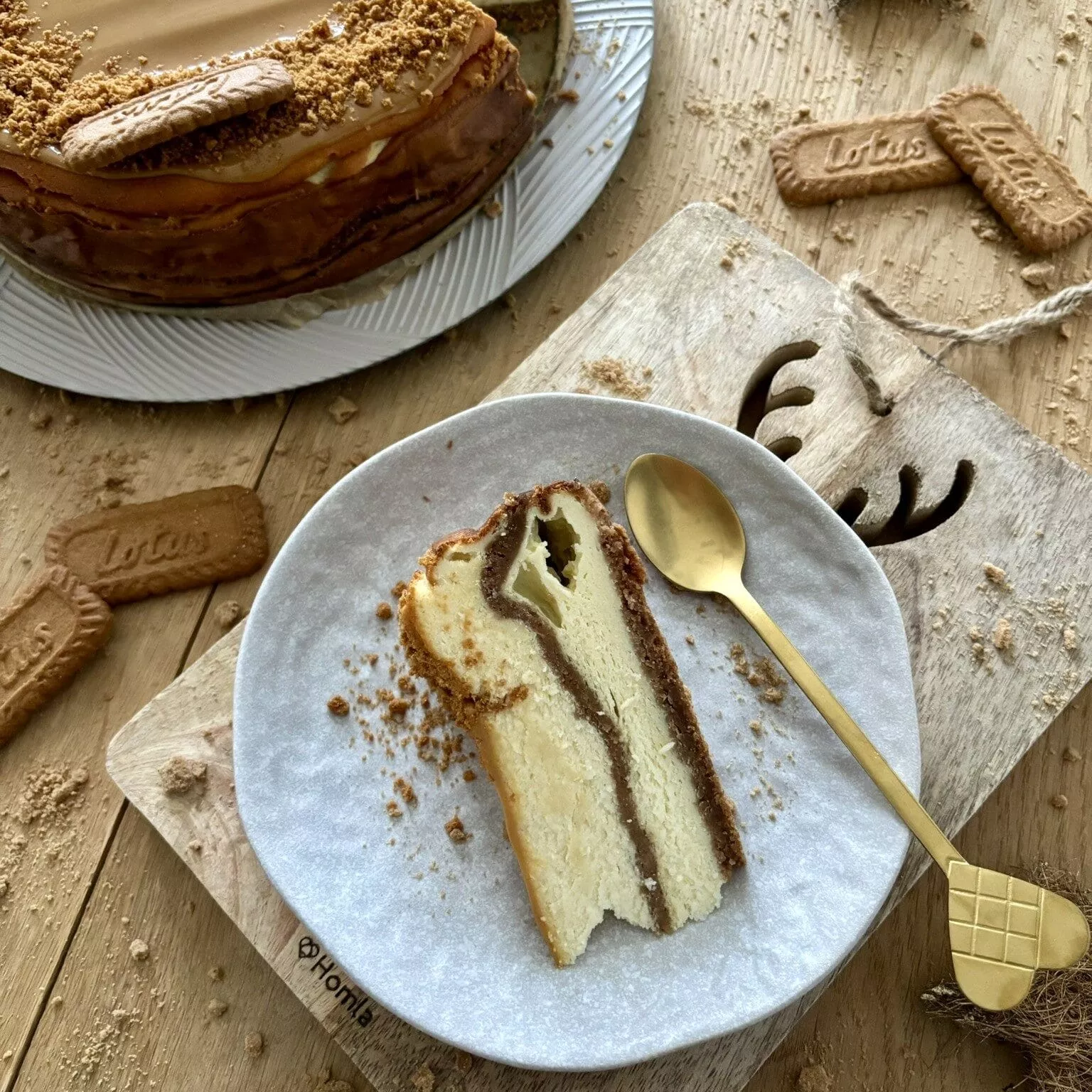 Sernik Lotus z ciasteczkowym środkiem to wyjątkowy deser, który łączy delikatną, kremową masę serową z charakterystycznym smakiem lekko korzennych ciasteczek. Spód z kruszonych ciastek Lotus tworzy chrupiącą bazę, idealnie współgrającą z gładką warstwą sernika. W środku ukryta jest warstwa rozdrobnionych ciasteczek, które dodają wypiekowi wyjątkowego smaku i tekstury. Całość można udekorować masą kajmakową i pokruszonymi ciasteczkami, co nadaje sernikowi efektownego wyglądu. To idealny wybór na specjalne okazje lub jako deser, który zachwyci miłośników słodkości. Prosty w przygotowaniu, a jednocześnie efektowny, sernik Lotus szybko zyska uznanie wśród domowników i gości.