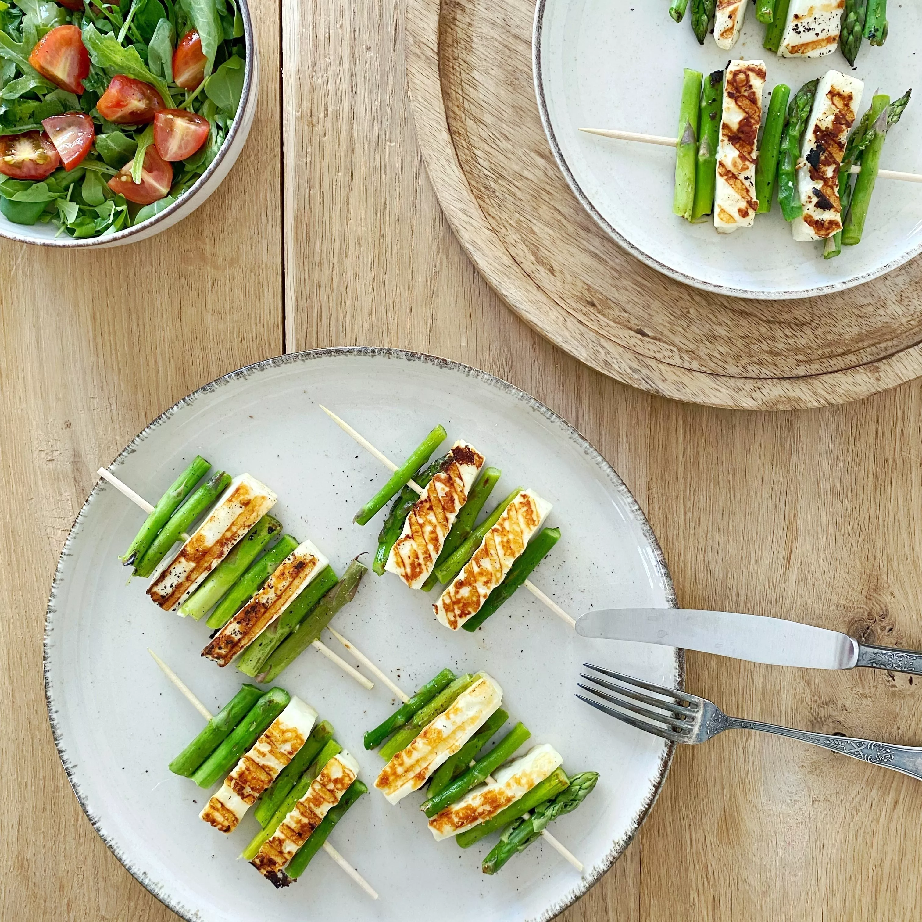 grill,  przyjęcia/imprezy,  ser halloumi,  szaszłyki,  szparagi