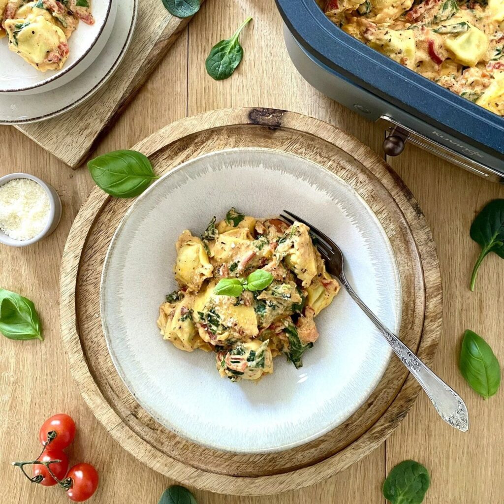 Tortellini w kremowym sosie pomidorowym z dodatkiem pieczonej papryki i szpinaku to wyjątkowo smaczne i kolorowe danie, które zachwyca różnorodnością smaków i tekstur. Pieczona papryka dodaje potrawie słodkiego smaku, podczas gdy świeży szpinak wzbogaca ją o świeżość. To danie, które zachwyci podniebienia zarówno miłośników tradycyjnych smaków, jak i tych poszukujących nowych doznań kulinarnych. Najlepiej smakuje z odrobiną startego sera i świeżymi ziołami.