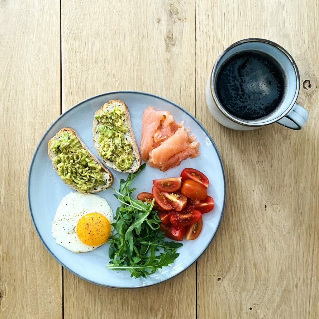 Tosty z pastą z awokado, jajkiem sadzonym, rukolą, pomidorkami i łososiem to wyśmienite danie, które łączy w sobie zdrowe składniki oraz pełen smaku łosoś. Pasta z awokado dodaje kremowej konsystencji i zdrowych tłuszczy, które doskonale komponują się z jajkiem sadzonym. Rukola jest aromatyczna i lekko pikantna, więc dodaje świeżości i intensywnego smaku. Pomidorki natomiast dostarczają soczystości i słodkiego akcentu, który balansuje smak dania. Łosoś, pełen kwasów omega-3 i białka, stanowi doskonałe źródło składników odżywczych. Jajko sadzone dodaje potrawie kremowej konsystencji i smaku, zwłaszcza gdy żółtko pozostaje lekko płynne. Całość komponuje się idealnie na chrupiącym toście, tworząc zgrany zespół smaków i tekstur. Tosty z tą kompozycją składników mogą być doskonałym wyborem na śniadanie lub lekki posiłek, który zadowoli nawet najbardziej wymagające podniebienia.
