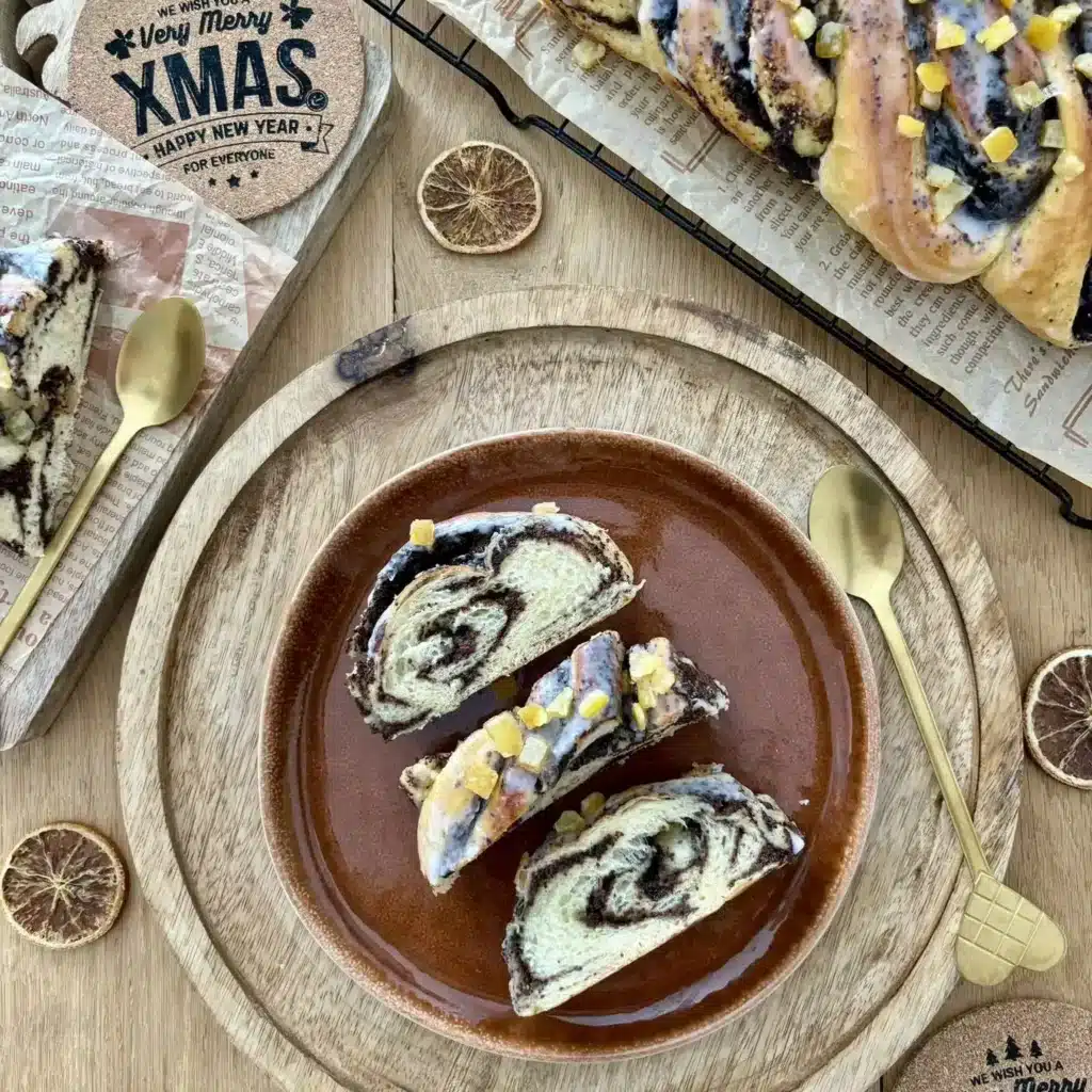 Warkocz drożdżowy z makiem to tradycyjny wypiek, który zachwyca zarówno smakiem, jak i wyglądem. Miękkie, puszyste ciasto drożdżowe doskonale komponuje się z bogatym, słodkim nadzieniem makowym. Charakterystyczny kształt warkocza nadaje wypiekowi elegancji, dzięki czemu jest on ozdobą każdego stołu. Po upieczeniu wierzch można udekorować lukrem i posypać kandyzowaną skórką pomarańczy, co podkreśla jego świąteczny charakter. To idealny wypiek na rodzinne uroczystości, święta lub jako słodka przekąska do filiżanki herbaty.