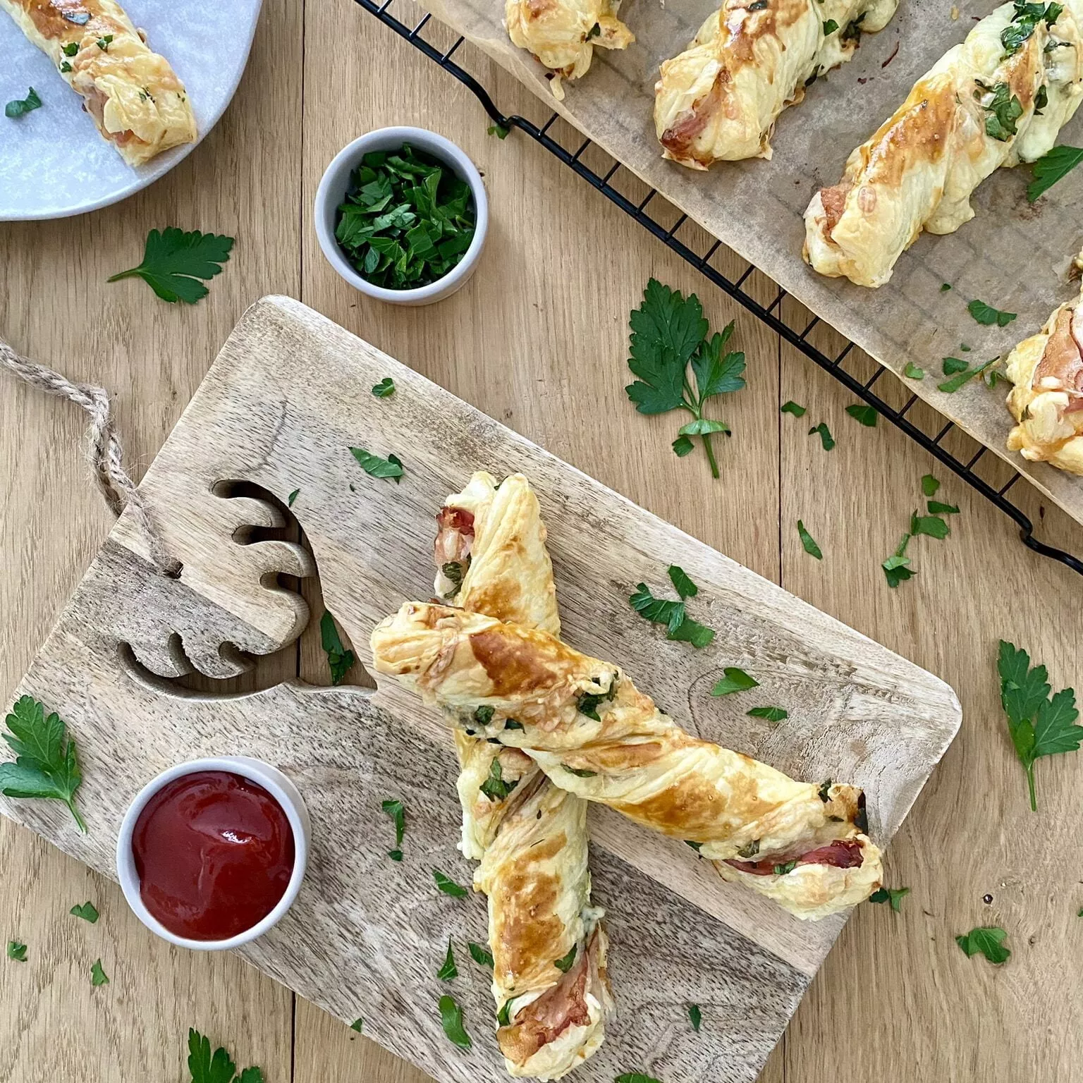 Zawijasy z boczkiem i serem z ciasta francuskiego
